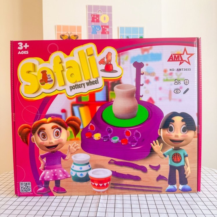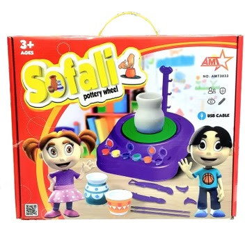 آموزش سفالگری کودکان مشخصات محصول: یک اسباب بازی کاربردی و مجهز برای آموزش هنر سفالگری و تقویت مهارت های دست ورزی ،که میتواند علاوه بر آموزش برای ساعت ها کودکان را سرگرم کند.شما میتوانید با قرار دادن باتری(۴عدد)داخل این دستگاه در هر کجا از آن استفاده کنید. و یا به وسیله آدابتور داخل بسته آن را به برق وصل نمایید. میتوانید دستگاه را روی سرعت کم گذاشته و به آرامی شروع به یادگیری کنیدو وقتی به خوبی سفالگری را آموختید میتوانید سرعت چرخش را بیشتر کرده همچنین به وسیله رنگ و ابزار های داخل بسته میتوانید به گل شکل دهید و آن را رنگ آمیزی کنید.